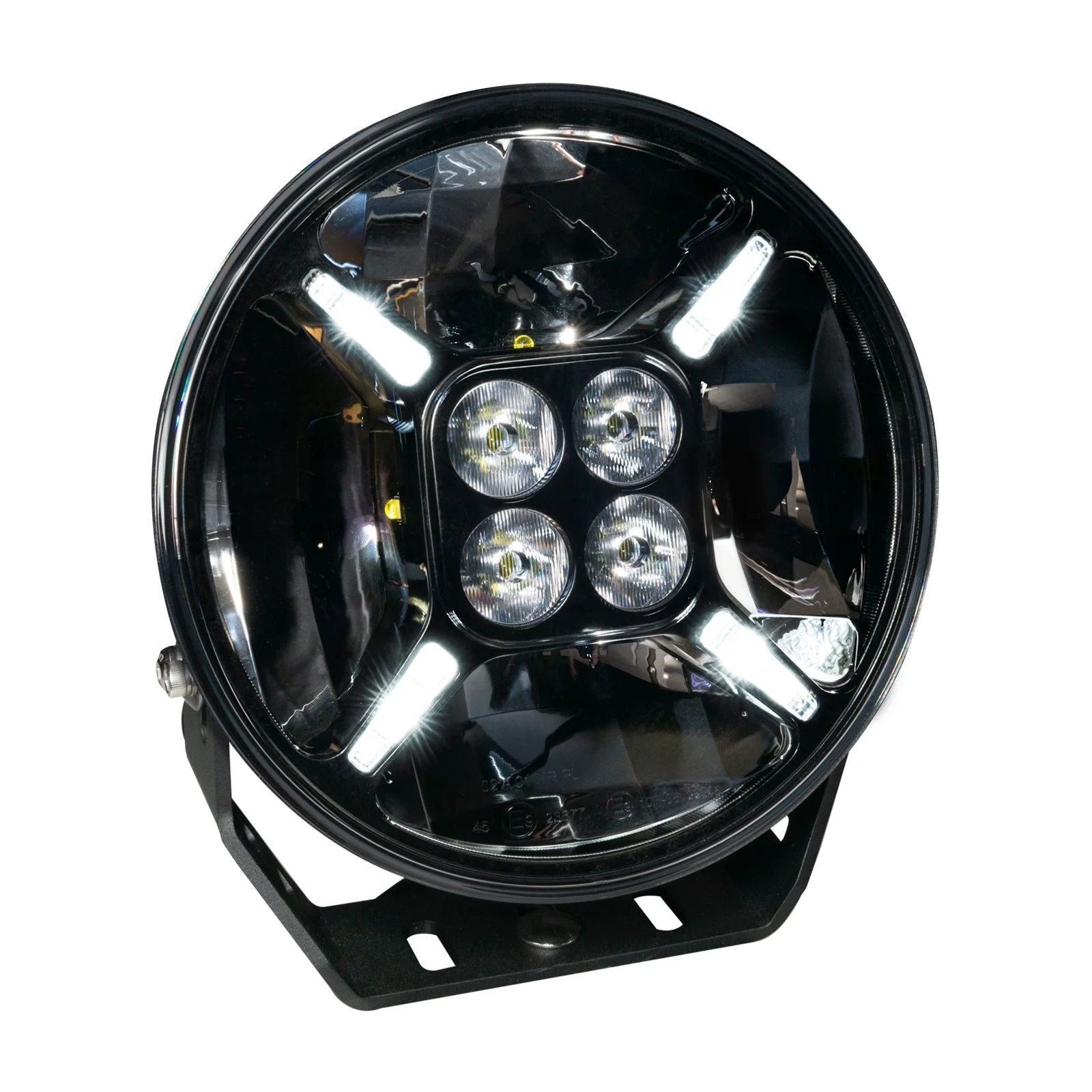 The integrated LED marker lights feature both white and amber LEDs which can be used for parking lights, DRL, and/or turn signals. This multifunctional automotive spotlight is the perfect solution to your lighting needs. With an Ingress Protection Rating of IP68 and a heavy-duty blacked-out housing, this 9" spotlight is rugged enough to last through all of your adventures with an LED lifespan of 80,000+ hours.
